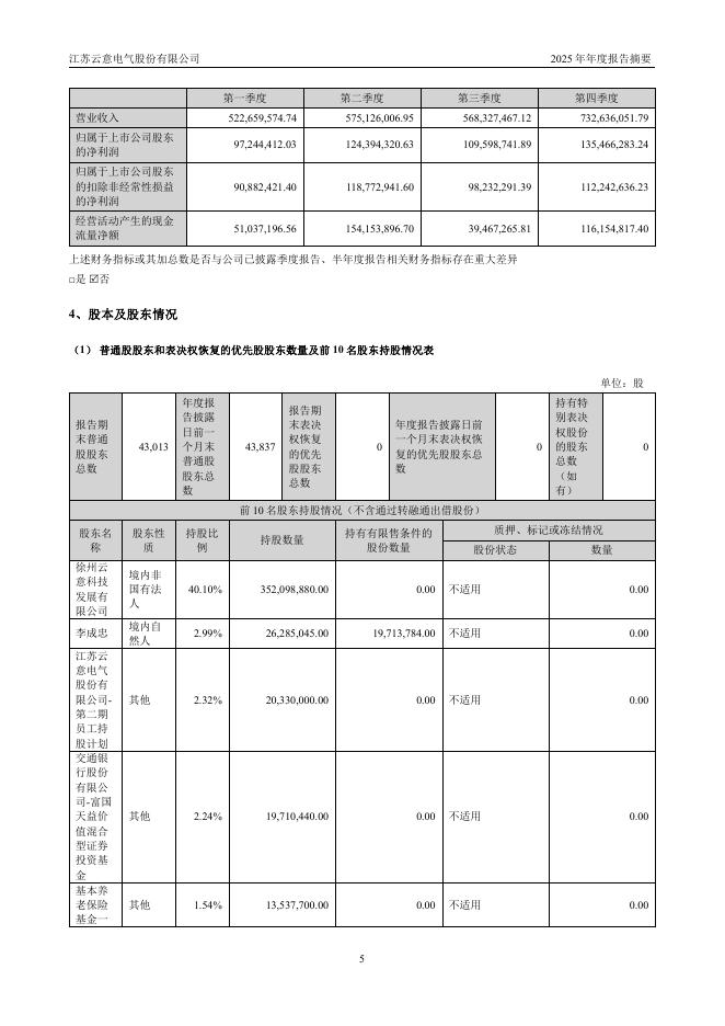 300304-云意电气:2025年年度报告摘要.pdf