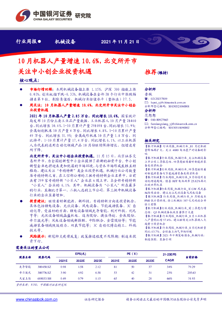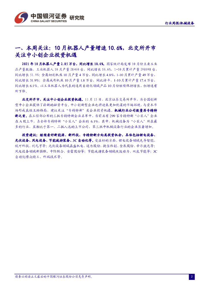 中国银河:机械设备行业周报:10月机器人产量增速10.6%,北交所开市关注中小创企业投资机遇.pdf