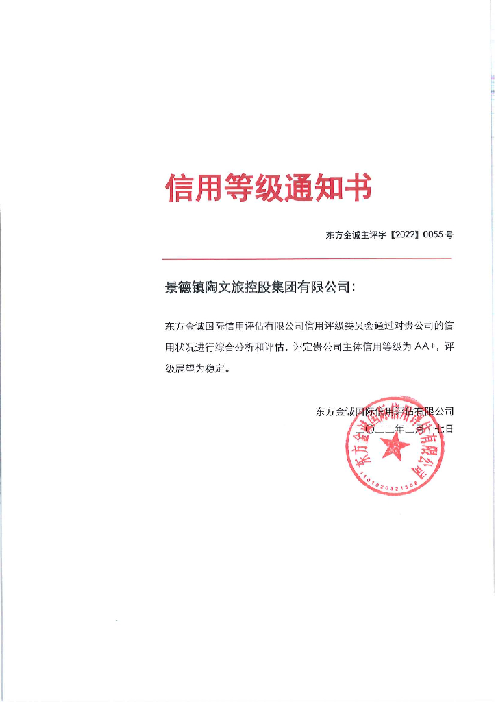 东方金诚:景德镇陶文旅控股集团有限公司主体信用评级报告及跟踪评级安排.pdf