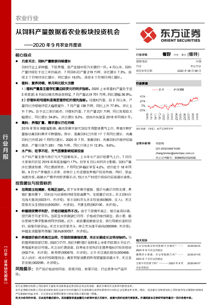 东方证券:2020年9月农业月度谈:从饲料产量数据看农业板块投资机会.pdf