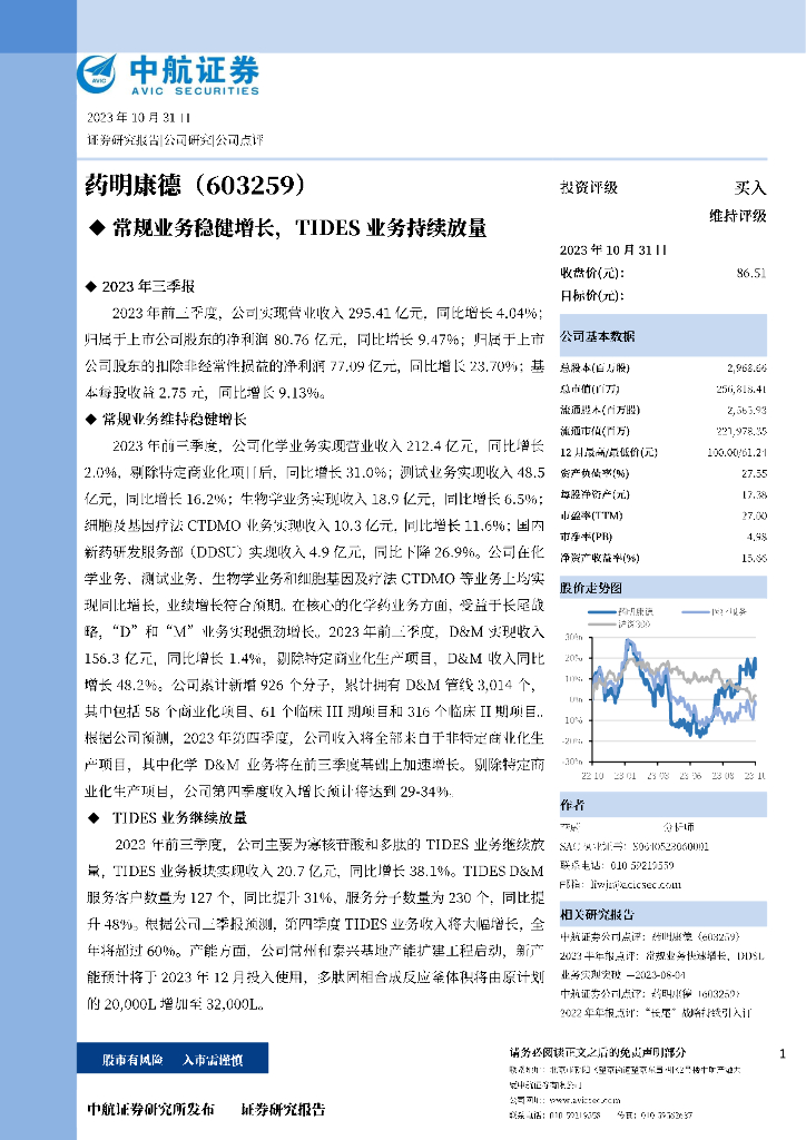 中航证券:药明康德(603259)-常规业务稳健增长,TIDES业务持续放量.pdf