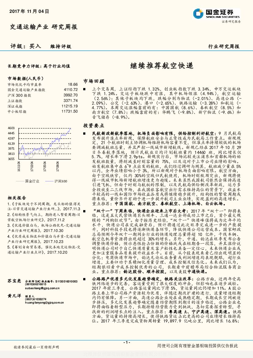 国金证券:交通运输产业研究周报:继续推荐航空快递.pdf