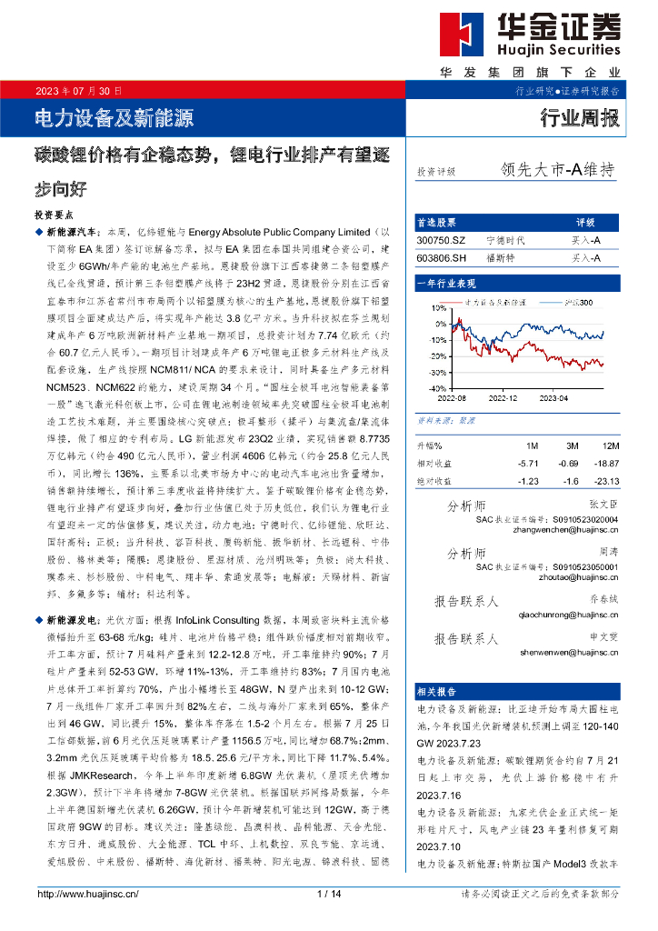 华金证券:电力设备及新能源行业周报:碳酸锂价格有企稳态势,锂电行业排产有望逐步向好.pdf
