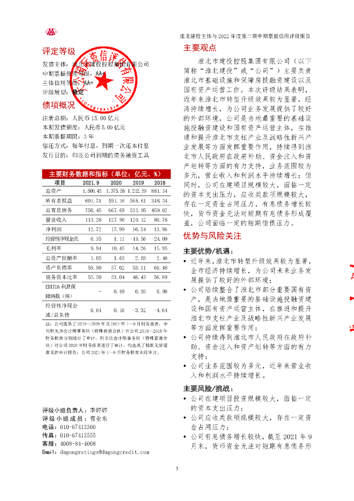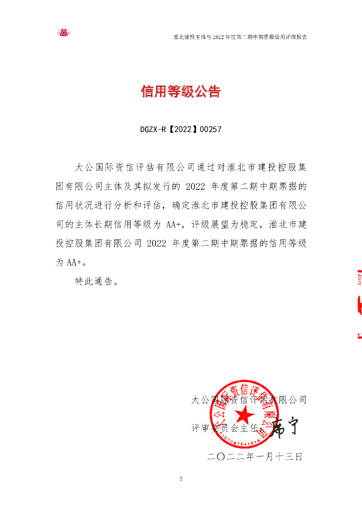 大公:淮北市建投控股集团有限公司主体与2022年度第二期中期票据信用评级报告.pdf