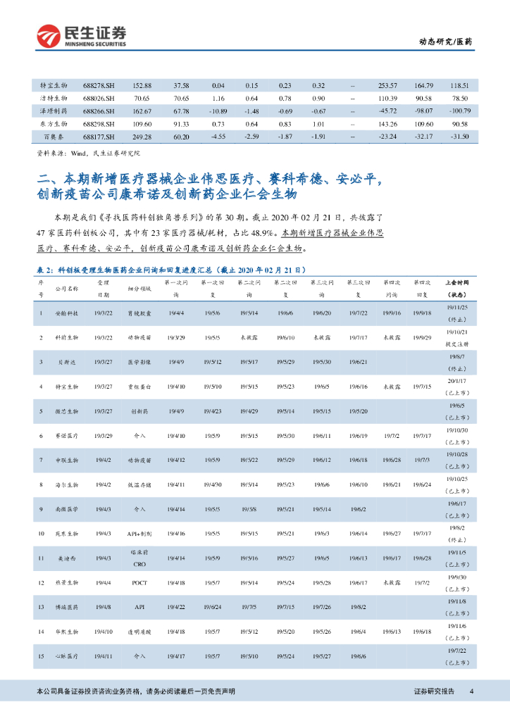 民生证券:科创板生物医药公司系列研究第30期:新增康希诺等5家企业,第四批科创基金陆续认购.pdf
