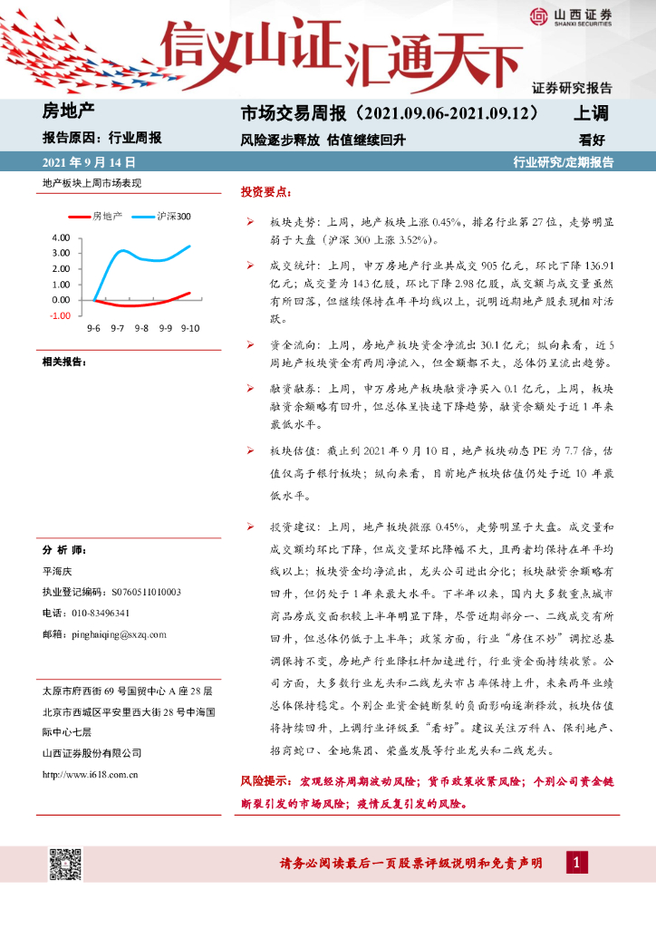 山西证券:房地产市场交易周报:风险逐步释放 估值继续回升.pdf