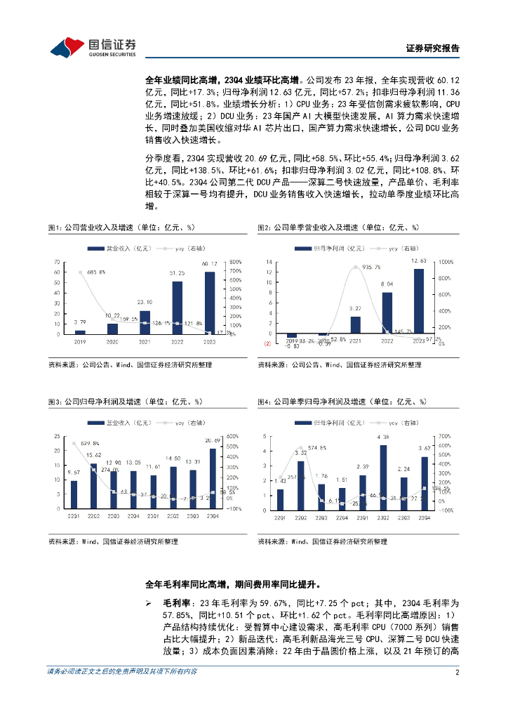 国信证券:海光信息(688041)-2023年年报点评:业绩同比高增,盈利能力大幅改善.pdf