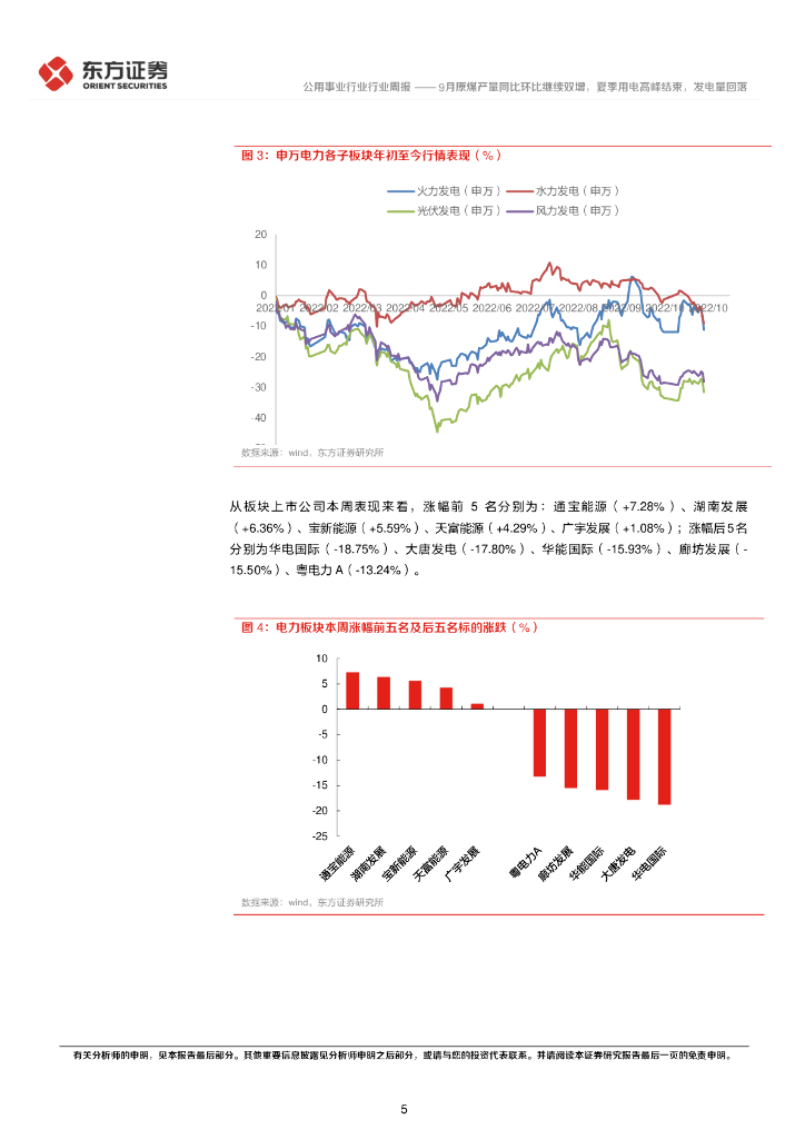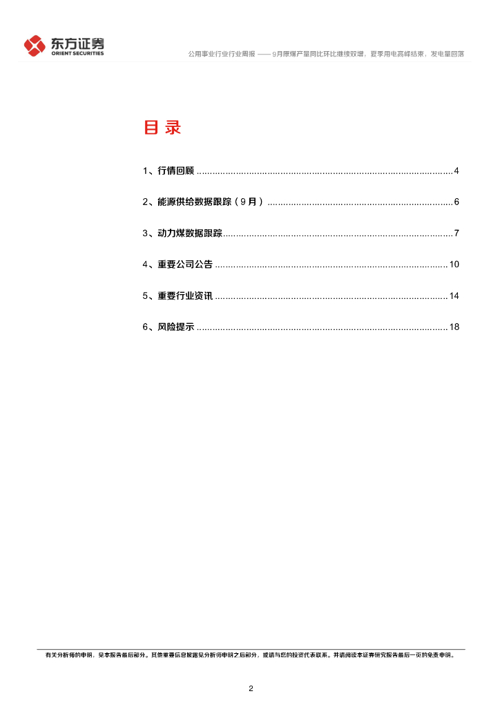 东方证券:公用事业行业周报:9月原煤产量同比环比继续双增,夏季用电高峰结束,发电量回落.pdf