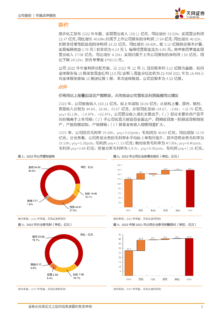 天风证券:扬农化工(600486)-高景气叠加新项目落地,22年业绩实现快速增长.pdf