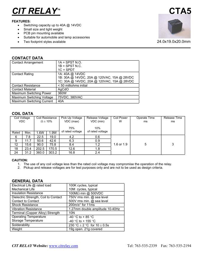 CIT RELAY CTA5 数据手册.pdf