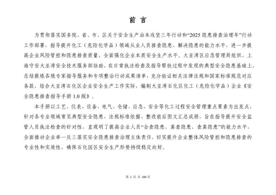 惠州大亚湾开发区管委会应急管理局:2025大亚湾石化区化工(危险化学品)企业安全隐患排查指导手册(1.0 版).pdf