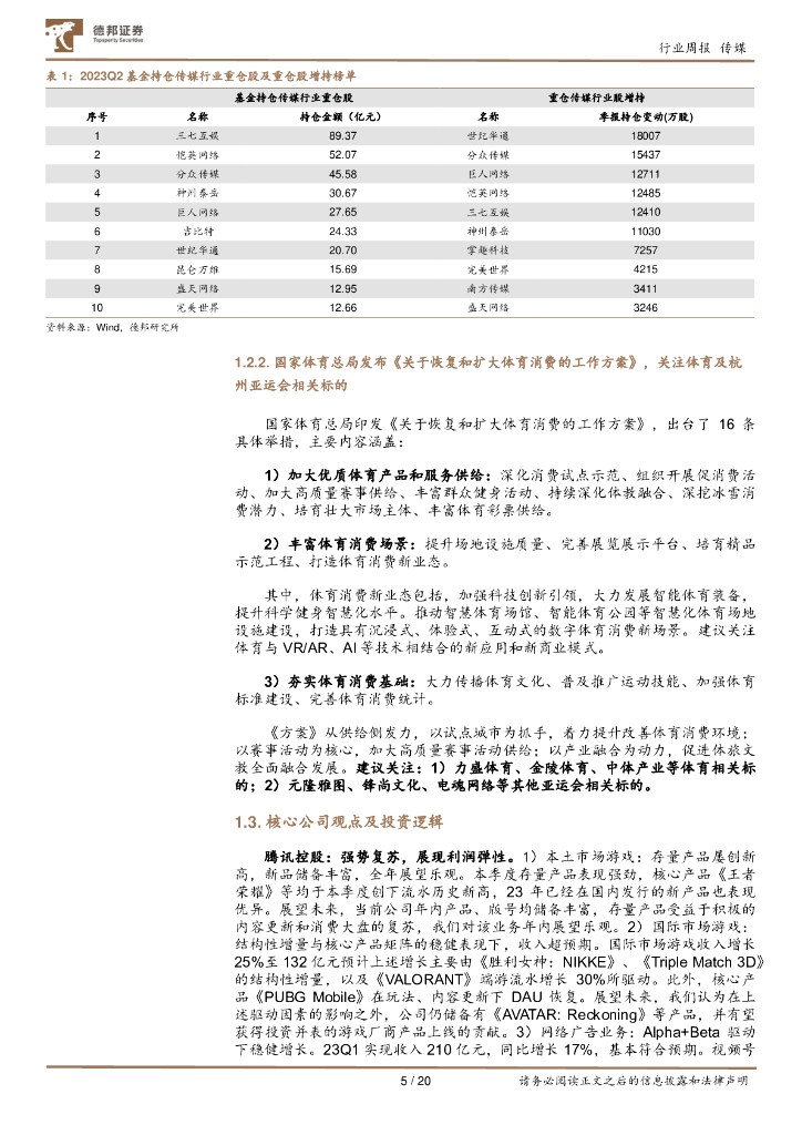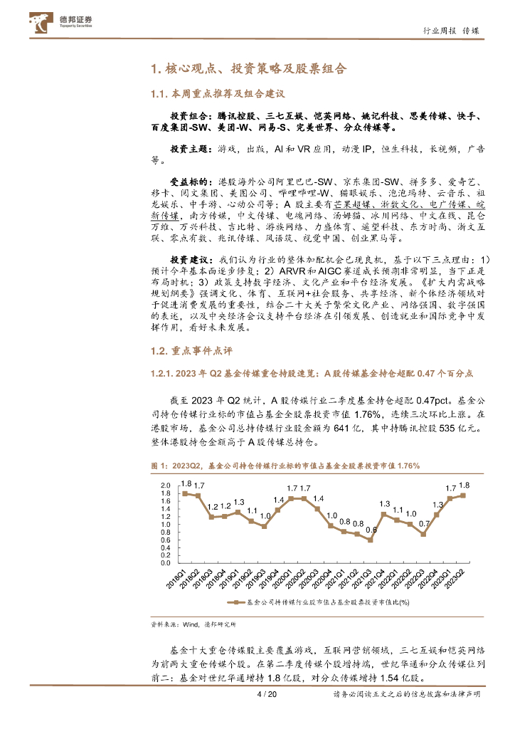 德邦证券:传媒互联网行业周报:二季度传媒持仓环比继续提升;关注中报绩优和体育赛事等相关标的.pdf