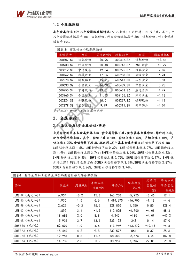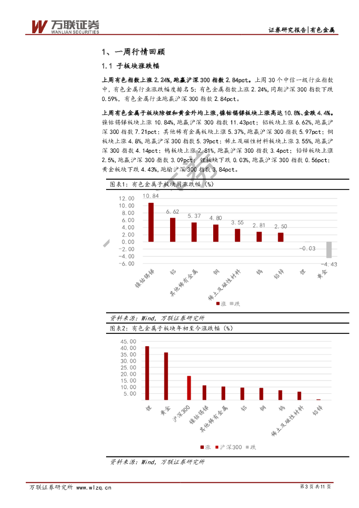 万联证券:有色行业周观点报告:配置alpha逻辑矿企,重视周期复苏锂盐.pdf