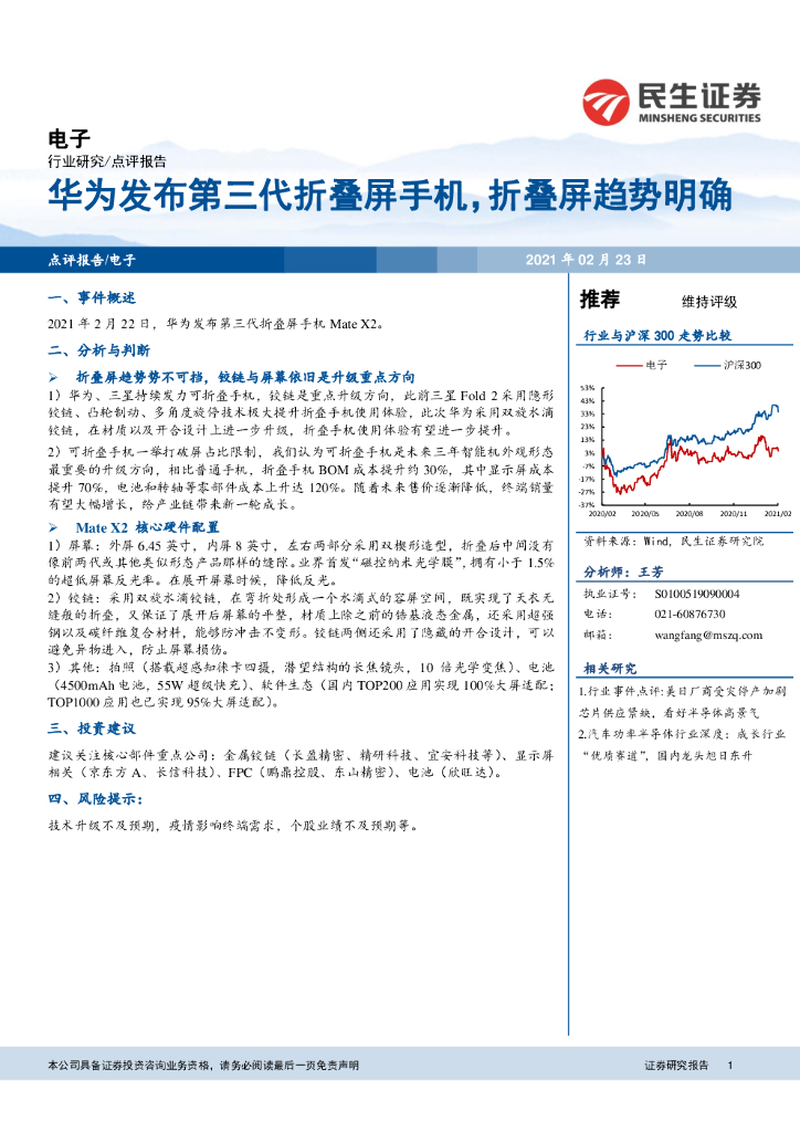 民生证券:电子行业研究:华为发布第三代折叠屏手机,折叠屏趋势明确.pdf