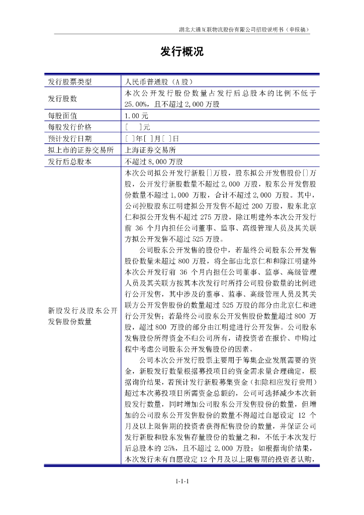 湖北大通互联物流股份有限公司上交所主板IPO上市招股说明书.pdf
