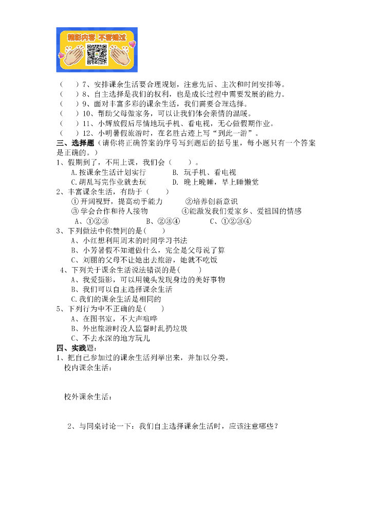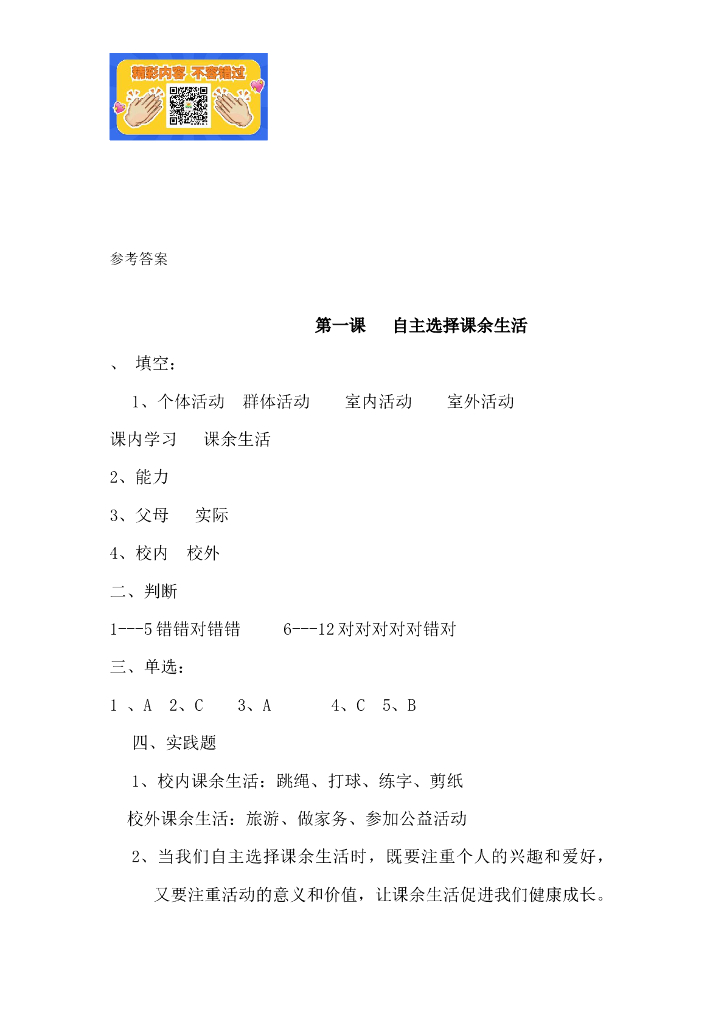 五年级上册道德与法治一课一练 第一课(含答案).doc