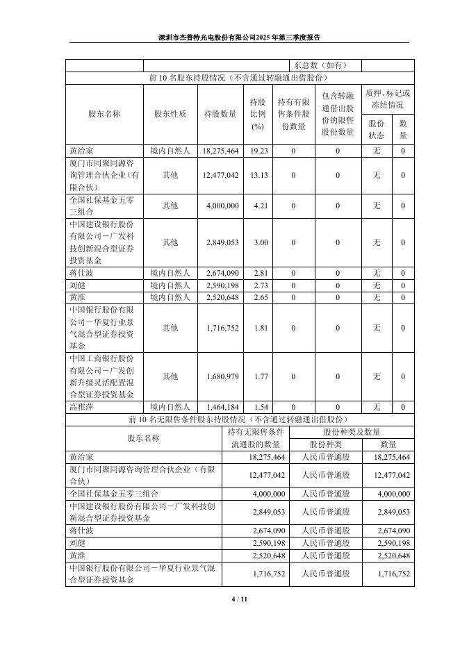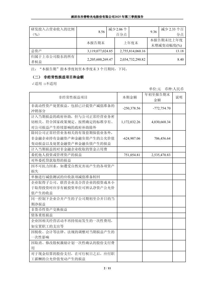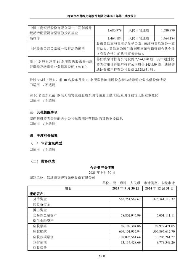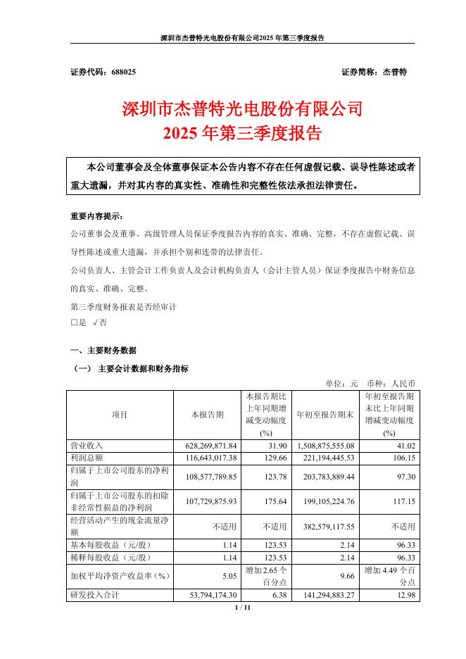 688025-杰普特:深圳市杰普特光电股份有限公司2025年第三季度报告.pdf