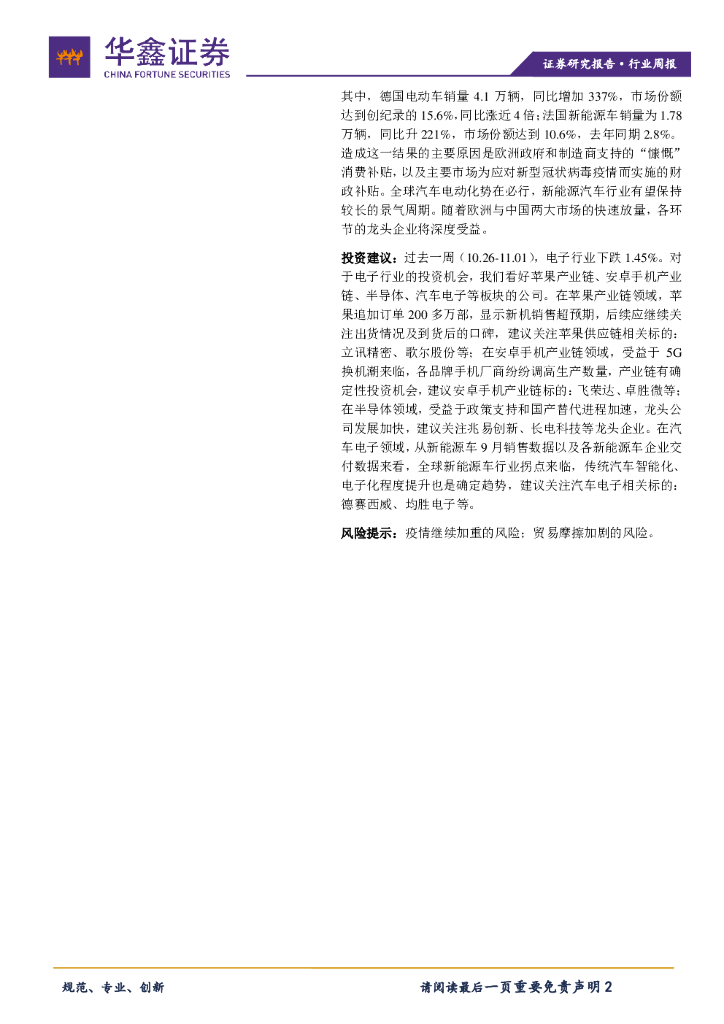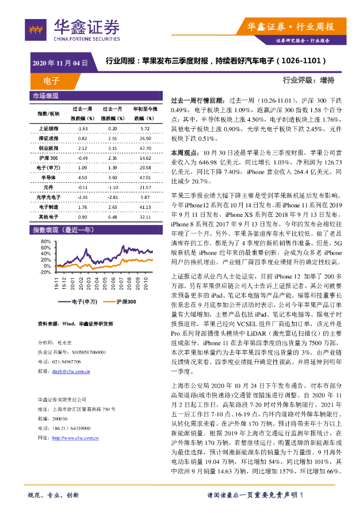 华鑫证券:电子行业周报:苹果发布三季度财报,持续看好汽车电子.pdf