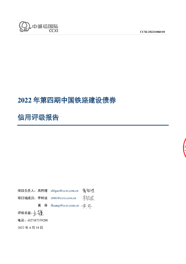 中诚信:2022年第四期中国铁路建设债券信用评级报告.pdf