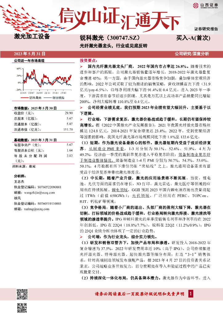 山西证券:锐科激光(300747)-光纤激光器龙头, 行业或见底反转.pdf
