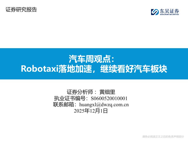 东吴证券:汽车行业周观点:Robotaxi落地加速,继续看好汽车板块.pdf