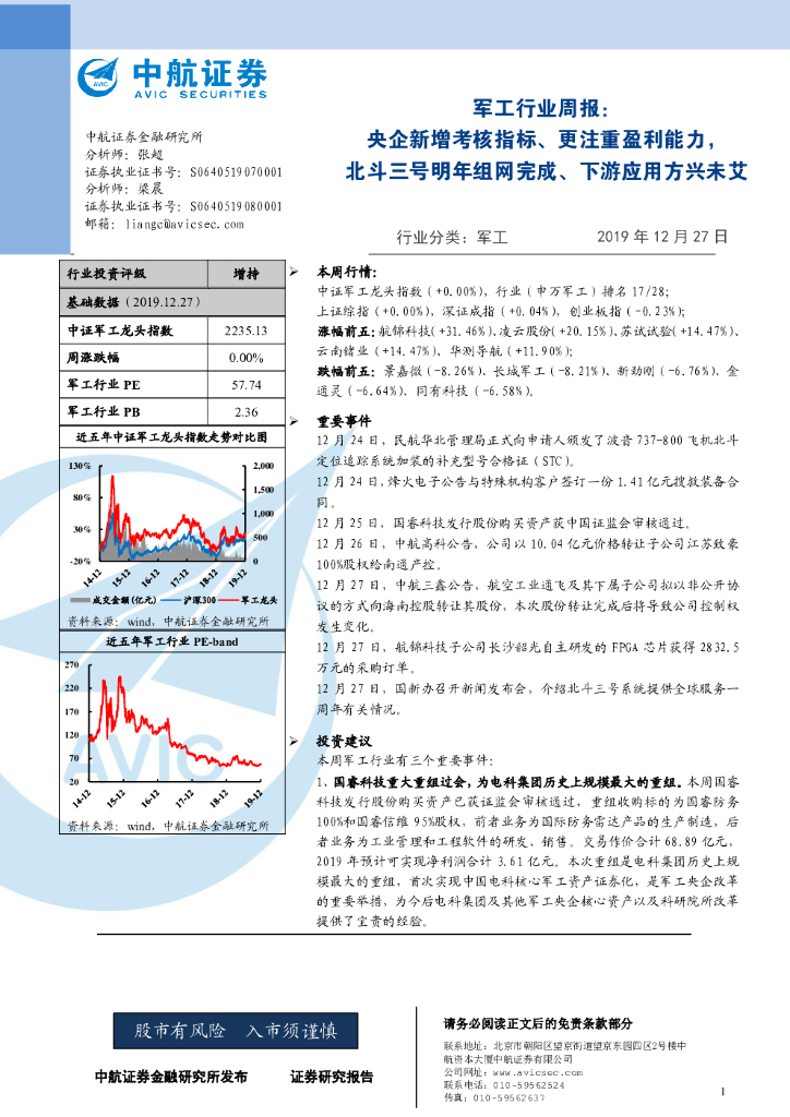 中航证券:军工行业周报:央企新增考核指标、更注重盈利能力,北斗三号明年组网完成、下游应用方兴未艾.pdf