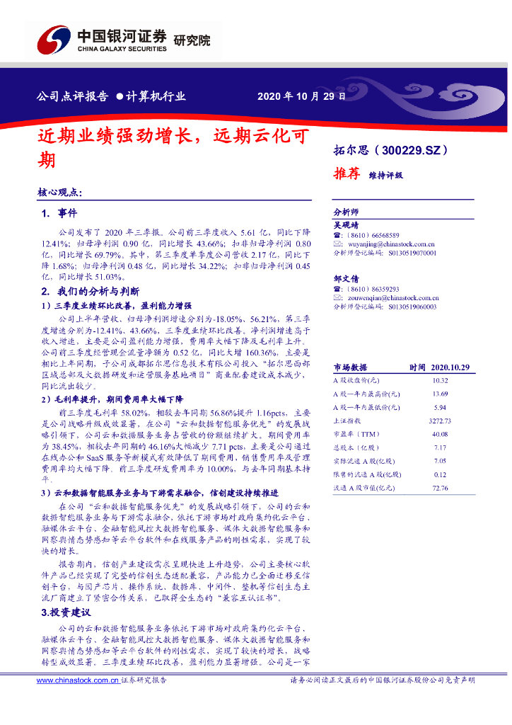 中国银河:拓尔思(300229)-近期业绩强劲增长,远期云化可期.pdf