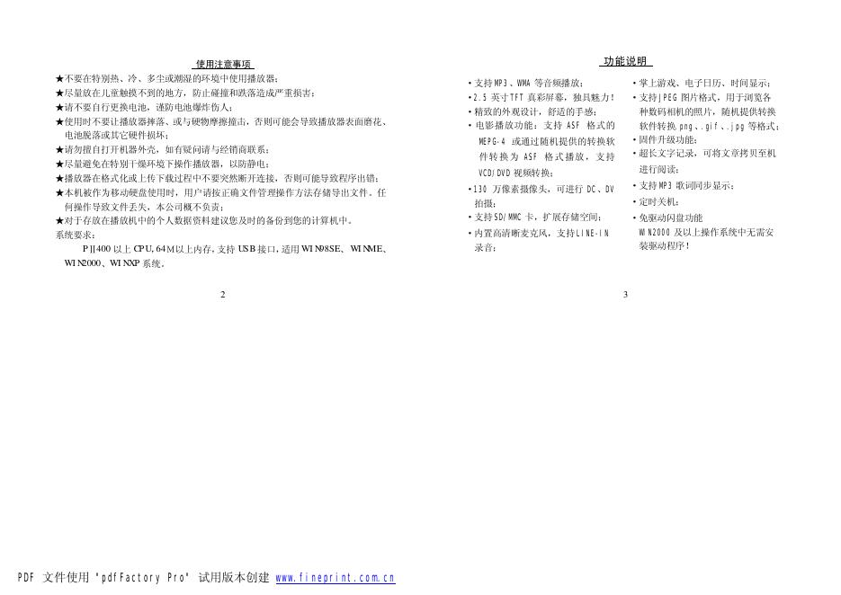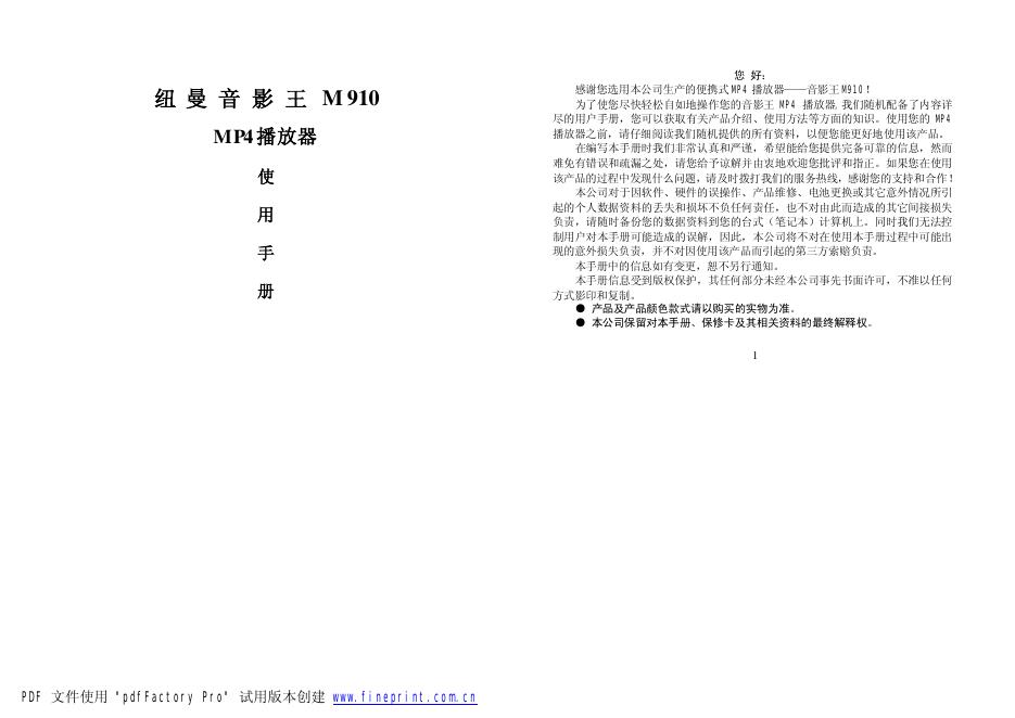 纽曼音影王 M910 MP4 播放器 用户手册.pdf