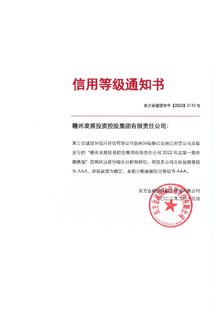 东方金诚:赣州发展投资控股集团有限责任公司2022年度第一期中期票据信用评级报告.pdf