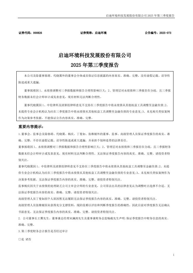 000826-启迪环境:2025年三季度报告.pdf