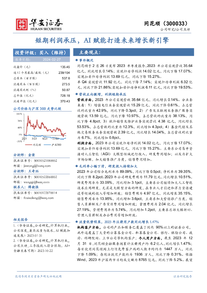 华安证券:同花顺(300033)-短期利润承压,AI赋能打造未来增长新引擎.pdf