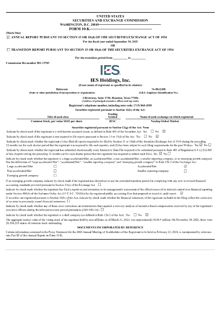 IES Holdings, Inc.(IESC)2023财年年度报告(英文版).pdf