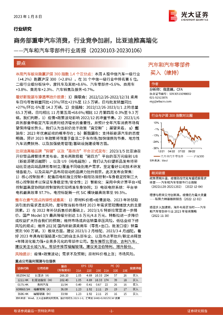 光大证券:汽车和汽车零部件行业周报:商务部重申汽车消费,行业竞争加剧,比亚迪推高端化.pdf