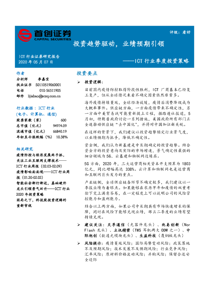 首创证券:ICT行业季度投资策略:投资趋势驱动,业绩预期引领.pdf
