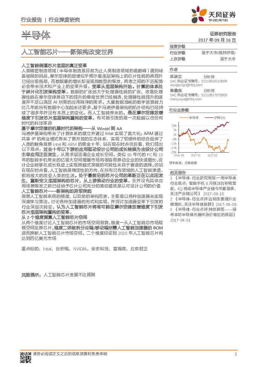 天风证券:半导体行业深度研究:人工智能芯片-新架构改变世界.pdf