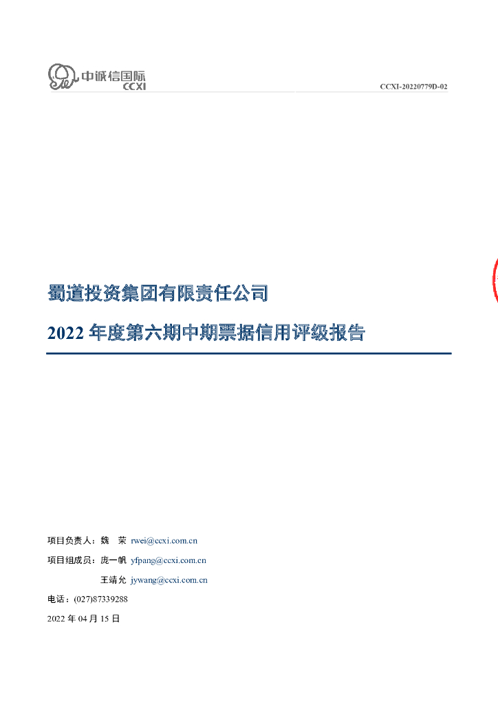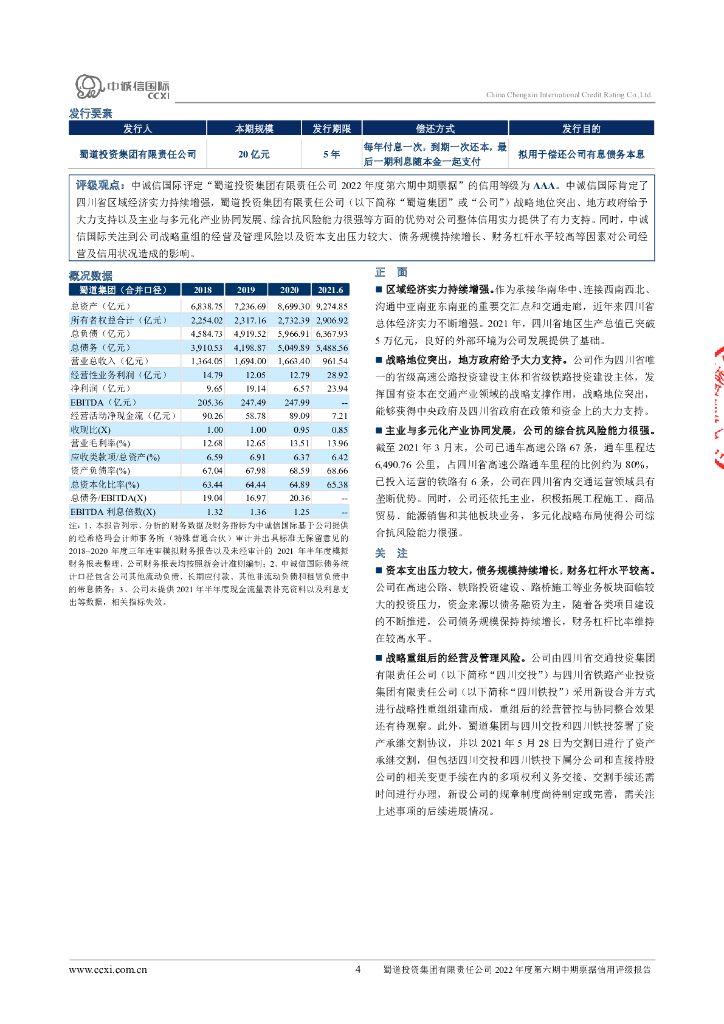 中诚信:蜀道投资集团有限责任公司2022年度第六期中期票据评级报告.pdf