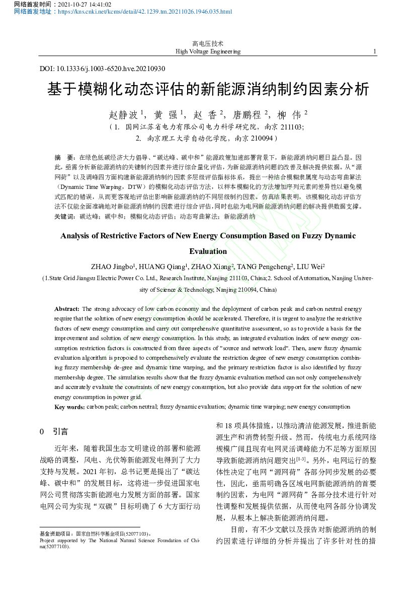 南京理工大学:基于模糊化动态评估的新能源消纳制约因素分析.pdf