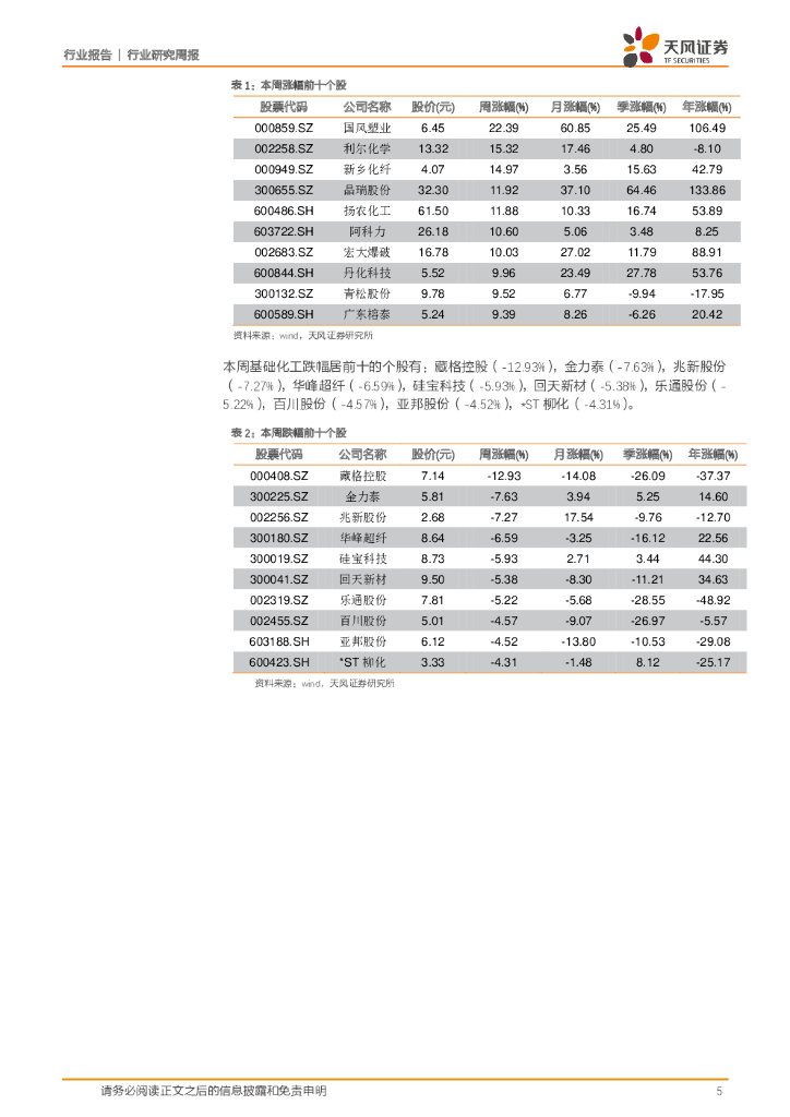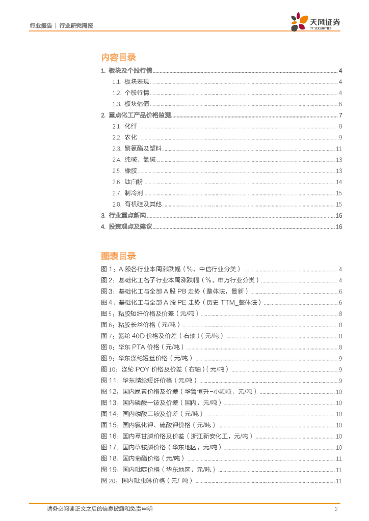 天风证券:化工行业研究周报:化工品大部分上涨,乙二醇和有机硅涨幅居前.pdf