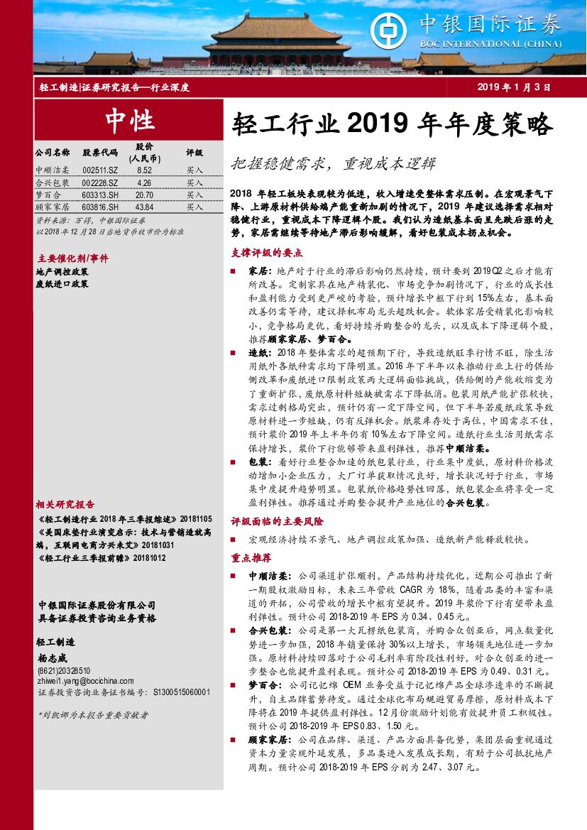 中银国际:轻工行业2019年年度策略:把握稳健需求,重视成本逻辑.pdf