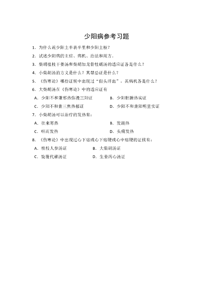 《伤寒论》少阳病参考习题.pdf
