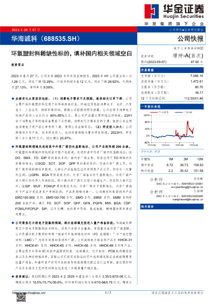 华金证券:华海诚科(688535)-环氧塑封料稀缺性标的,填补国内相关领域空白.pdf