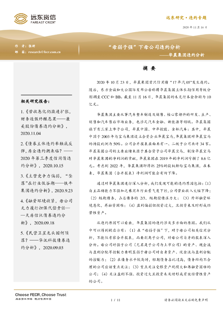 远东资信:“母弱子强”下母公司违约分析——华晨集团违约分析报告.pdf