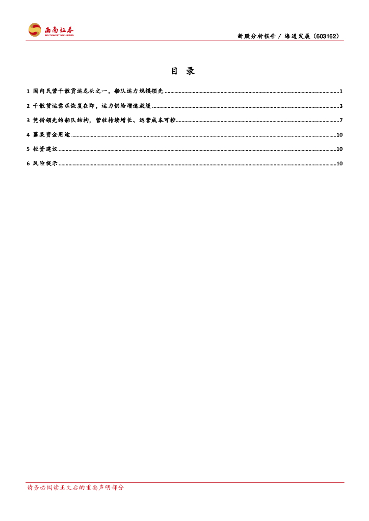 西南证券:海通发展(603162)-募资提升运力规模,有望享受高盈利弹性.pdf