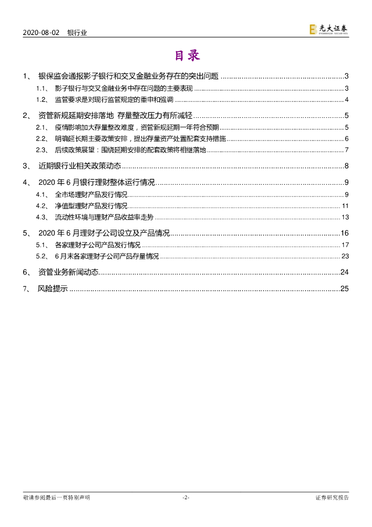 光大证券:银行理财2020年7月报:监管再度出手影子银行 资管新规确认延期一年.pdf