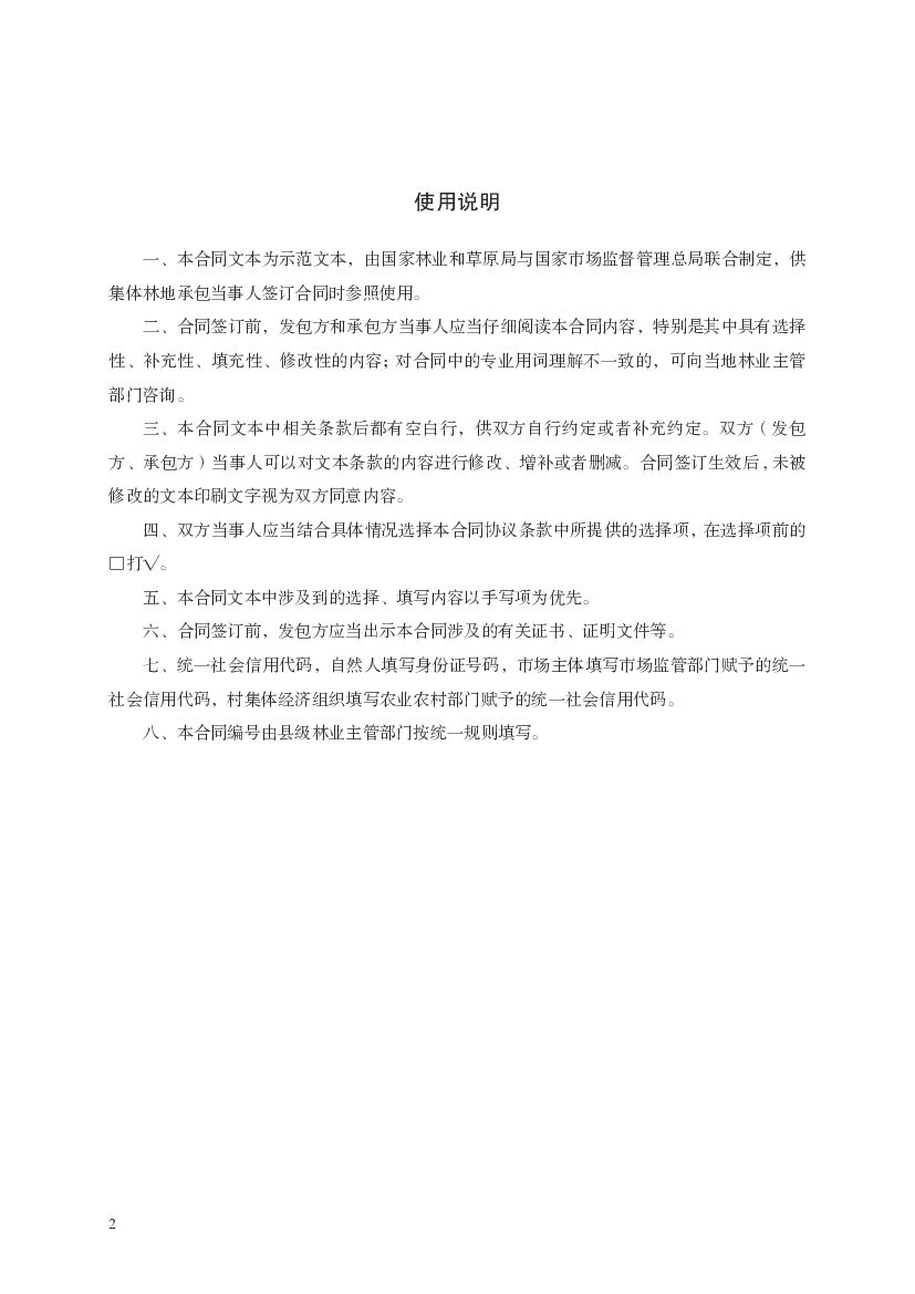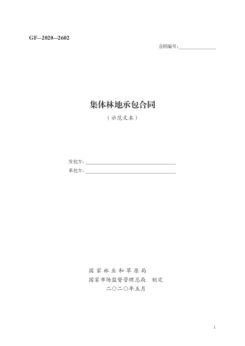 GF-2020-2602 国家林业和草原局:集体林地承包合同(示范文本).doc