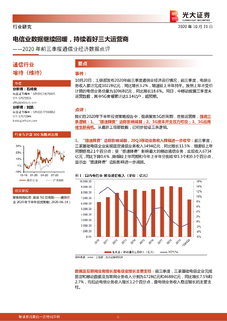 光大证券:2020年前三季度通信业经济数据点评:电信业数据继续回暖,持续看好三大运营商.pdf