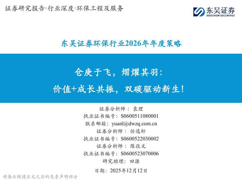 东吴证券:环保行业2026年年度策略:仓庚于飞,熠燿其羽:价值+成长共振,双碳驱动新生!.pdf