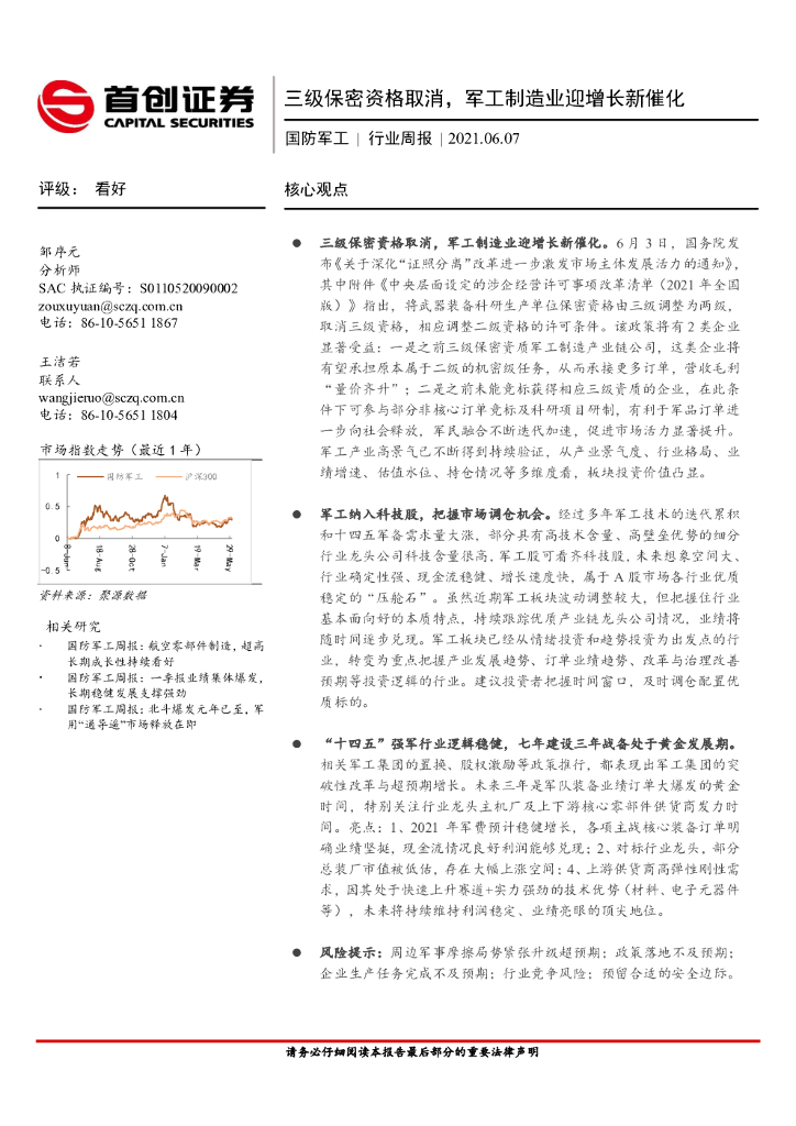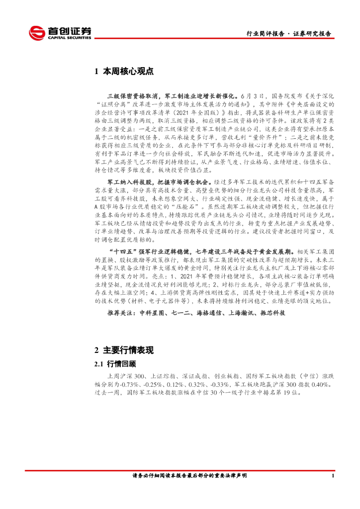 首创证券:国防军工行业周报:三级保密资格取消,军工制造业迎增长新催化.pdf