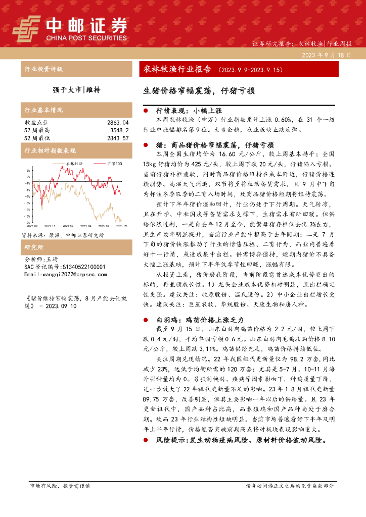 中邮证券:农林牧渔行业报告:生猪价格窄幅震荡,仔猪亏损.pdf