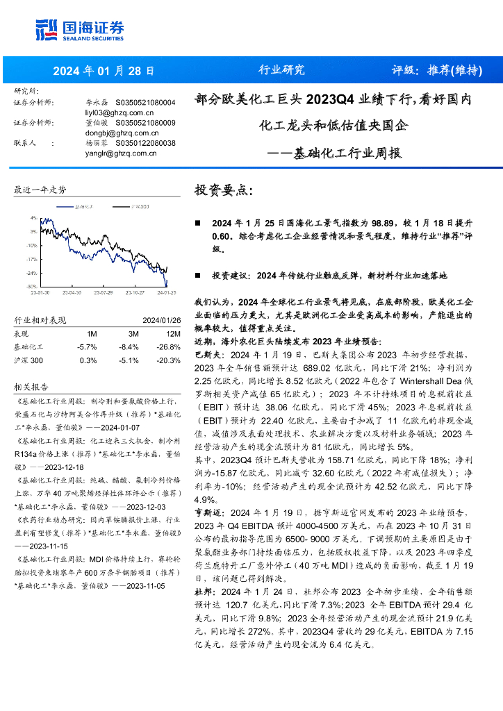 国海证券:基础化工行业周报:部分欧美化工巨头 2023Q4 业绩下行,看好国内化工龙头和低估值央国企.pdf